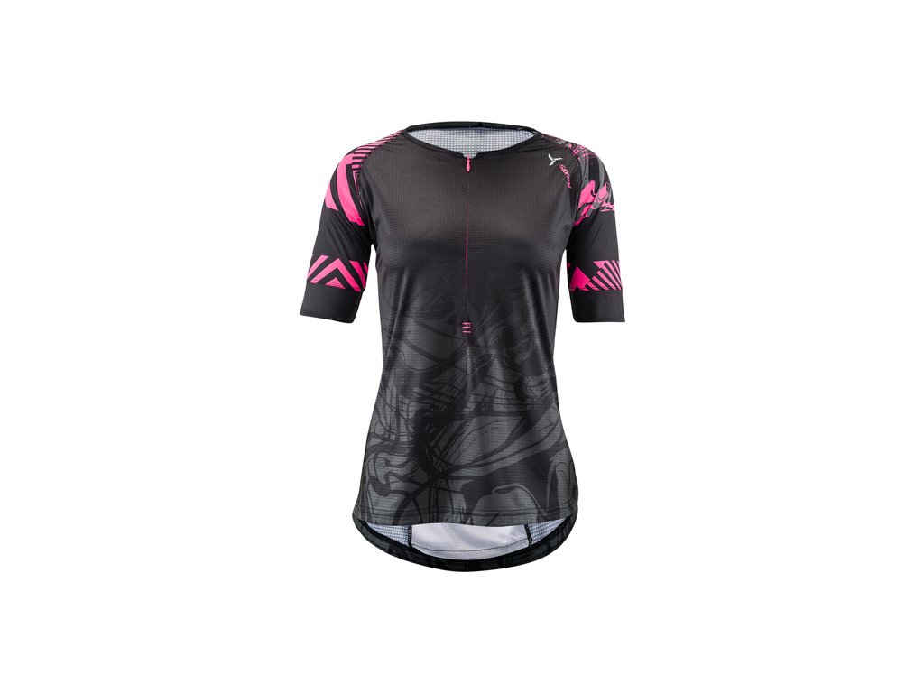 Stabina je dámský elastický MTB dres volného střihu vyrobený z lehkého materiálu Light MESH Antiodour, který dokonale odvádí pot a je velmi prodyšný. V přední části je krátký skrytý zip, který jde snadno rozepnout jednou rukou i během jízdy. Zadní část dresu disponuje horizontální zipovou kapsou a ozdobným potiskem. Samozřejmostí je bezpečnostní reflexní potisk. Materiálové složení: HLAVNÍ MATERIÁL: 100% POLYESTER, KONTRASTNÍ MATERIÁL: 90% POLYESTER, 10% SPANDEXDoplňkové parametry