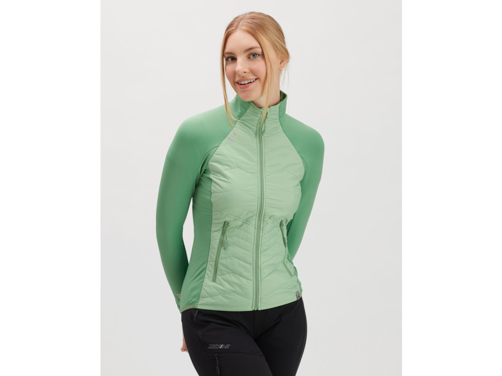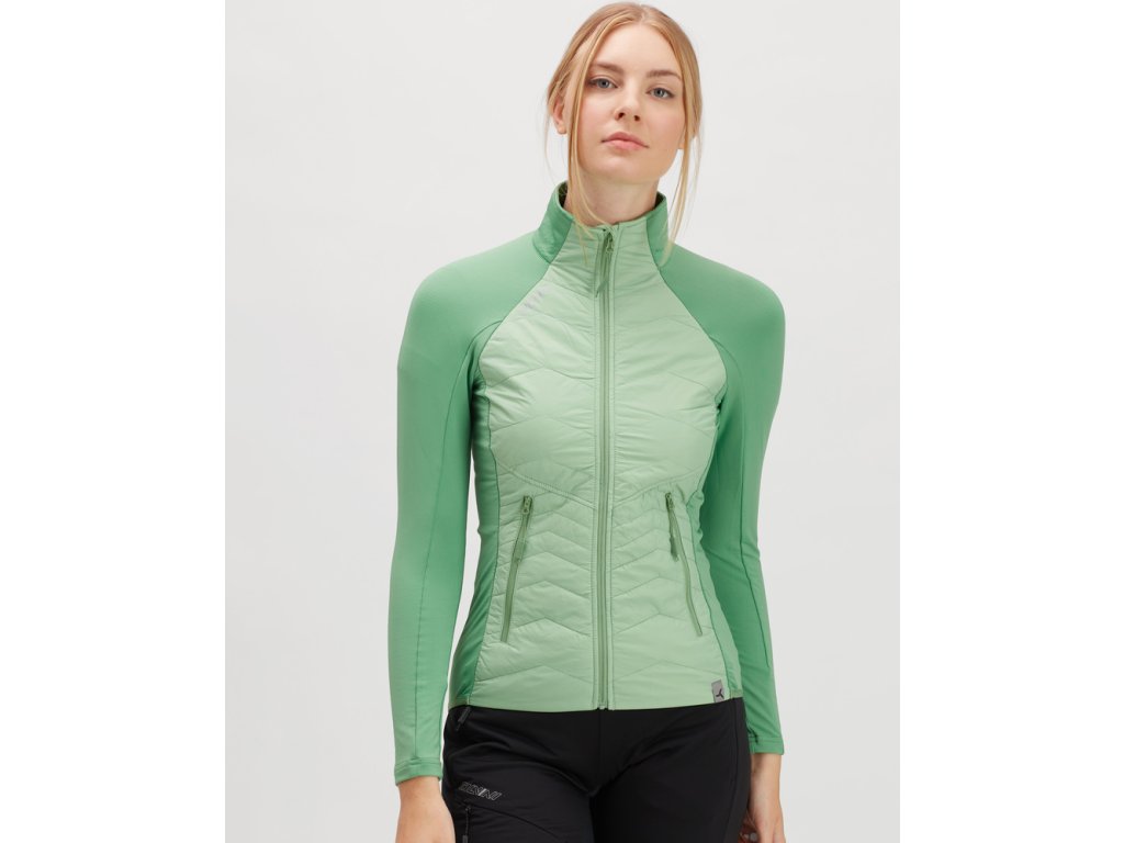 Sillaro je dámská prodyšná mikina úzkého střihu, zateplená na předním díle pomocí Primaloft® Silver Insulation Active 40 g. Rukávy a zadní díl jsou z lehkého elastického materiálu QuatroFLEX Therm, a tak se mikina skvěle přizpůsobí každé postavě. Má praktický stojáček, který chrání krk proti větru a nechybí ani ochranná látková krytka zipu, zabraňující poškrábání. Na mikině naleznete dvě zipové kapsy v přední části a ochranné reflexní prvky. Zadní část je zakončená elastickou gumičkou. Mikinu Sillaro využijete jako druhou vrstvu na skialp, běžky či jiné outdoorové sporty. Materiálové složení: HLAVNÍ MATERIÁL: 93% POLYESTER, 7% ELASTAN, KONTRASTNÍ MATERIÁL: 100% NYLON, INSULATION: 100% POLYESTERDoplňkové parametry