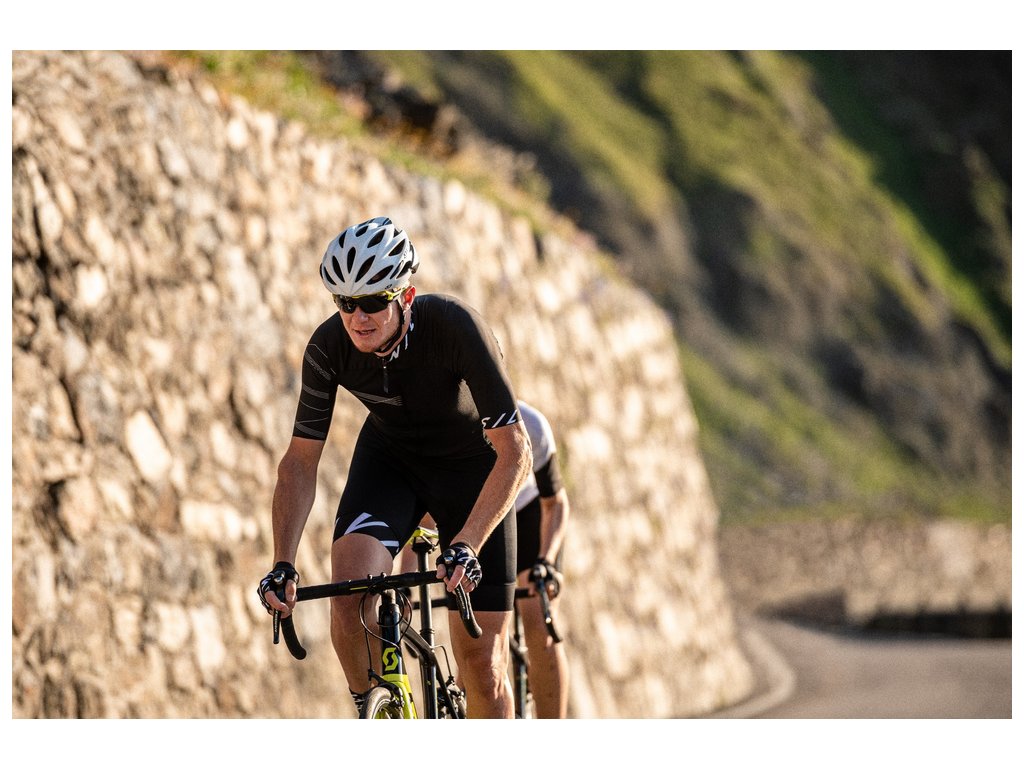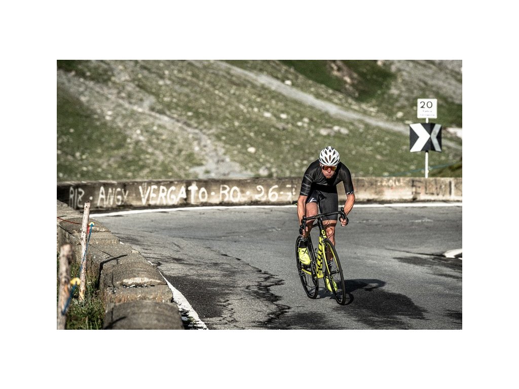Stelvio je pánský silniční dres úzkého střihu vyroben z kombinace pružných a velmi vzdušných funkčních materiálů - Light MESH a Ultra Light MESH. Díky těmto materiálům jsou je Stelvio vhodný i na vyjížďky v horkých letních dnech. Dres je šit ve 3D tvaru a perfektně sedí v pozici na kole - přední část je proto výrazně kratší než zadní. Vepředu má celopropínací kostěný zip, který jde snadno rozepínat jednou rukou i během jízdy. Prodloužený zadní díl má gumový lem se silikonem, aby dobře držel na místě. Prodloužené rukávy jsou řezané laserem. Na dresu jsou samozřejmostí bezpečnostní reflexní prvky a klasická trojkapsa. Dres byl vyvinut společně s Roman Kreuziger Cycling Academy tak, aby splňoval náročné požadavky silničních cyklistů při maximálně aktivních trénincích. Materiálové složení: HLAVNÍ MATERIÁL: 94% POLYESTER, 6% ELASTAN, KONTRASTNÍ MATERIÁL: 100% POLYESTER, KONTRASTNÍ MATERIÁL 2: 94% POLYESTER, 6% ELASTANDoplňkové parametry